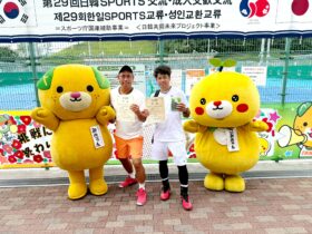 那須コーチ&江口コーチ(グローバルアリーナ)は45以上ダブルスに福岡県代表として出場し、見事に準優勝!!
